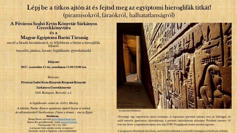 Fővárosi Szabó Ervin Könyvtár Sárkányos Gyerekkönyvtára Lépj be a titkos ajtón át és fejtsd meg az egyiptomi hieroglifák titkát!